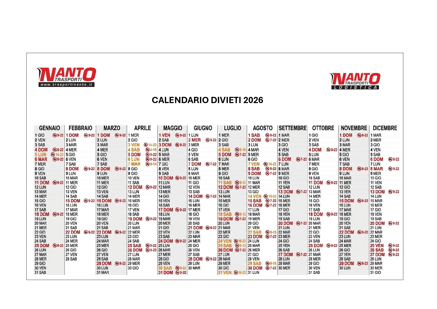 CALENDARIO 2026 MEZZI PESANTI